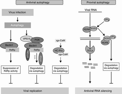 此外,还有更厉害的一招就是与敌人“同归于尽”。植物在感受到自身生物膜系统异常后,会激活自噬途径,同时自噬核心蛋白Beclin1会特异识别病毒复制酶,然后自噬体在Beclin1引导下会把病毒整个复制工厂“吃掉”,从而抑制病毒的侵染和增殖。