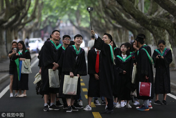 5月31日.南京农业大学的毕业生们在校园内拍摄毕业照片. (来源:视觉中国)