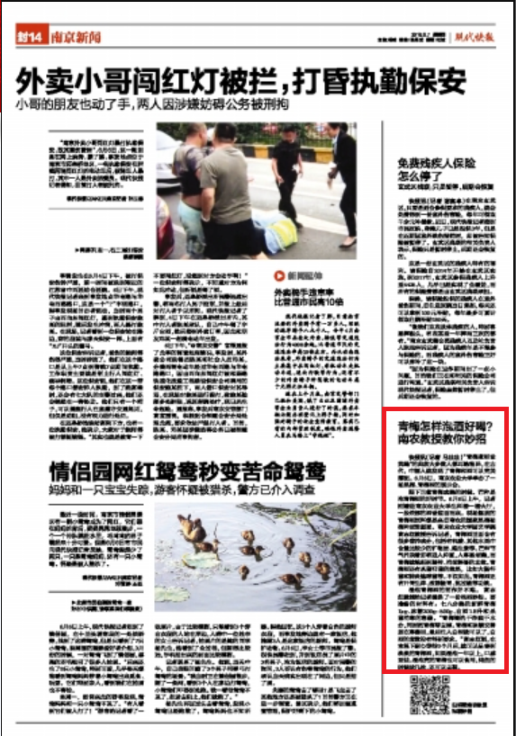 眼下正值青梅成熟的时候。芒种是泡青梅酒的好时节。6月6日上午,记者刚踏进南京农业大学生科楼一楼大厅,一股浓郁的酒香迎面而来。现场摆放的青梅酒原料都是来自南农的国家果梅杨梅种质资源圃。南京农业大学园艺学院高志红教授告诉记者,青梅酒里面含有很多营养成分,包括有机酸、其他水果中含量比较少的矿物质、维生素等。芒种节气代表着即将进入仲夏,人容易烦躁,而青梅就能起到凝神、消烦解暑的功效。青梅酒还有杀菌抑菌的效果,比如大肠杆菌和肺炎链球菌等。不仅如此,青梅酒还有开胃生津、改善肠胃、抗过敏等功效。