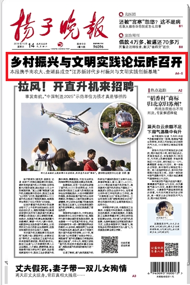 在此背景下,2018江苏新时代乡村振兴与文明实践高峰论坛暨金湖“乡村振兴讲习所”实践创新研讨会由新华报业传媒集团扬子晚报和金湖县委县政府联合主办,活动旨在通过专家学者的深度解读,探索和总结新时代文明实践对于乡村振兴战略的意义,同时也以金湖县“乡村振兴讲习所”的创新做法为样本,研讨新时代文明实践助力乡村振兴的现实路径。
