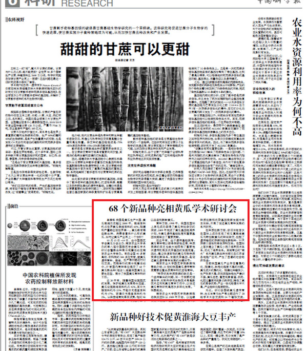 育种方面,1998年,我国在国际上率先成功取得了黄瓜种间杂交的突破,2009年完成了黄瓜基因组测序计划,为黄瓜遗传基础拓宽和重要基因发掘做出了重要贡献。
