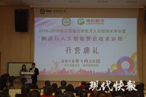 在南京师范大学仙林校区,地理信息科学学术冬令营、翻译与人工智能整合技术运用学术冬令营双双开营。以调研参观、产业沙龙为特色的地理信息科学学术冬令营,不仅请来学术大咖做讲座,还将邀请营员走访 " 地理信息小镇 " 浙江德清,分组形成调研报告,进行交流 PK 。在翻译与人工智能整合技术运用学术冬令营省内外众多外语专业学生,在听了中国社科院顾曰国教授带来的主旨讲座后,有很不少想法。" 现在,计算机辅助翻译软件比较常见了,但运用还是不够方便,如果能加入人工智能技术,那将给翻译产业带来大变革。" 现场,同学们围绕此话题,还举办了一场 " 语言服务行业创新创业沙龙 "。