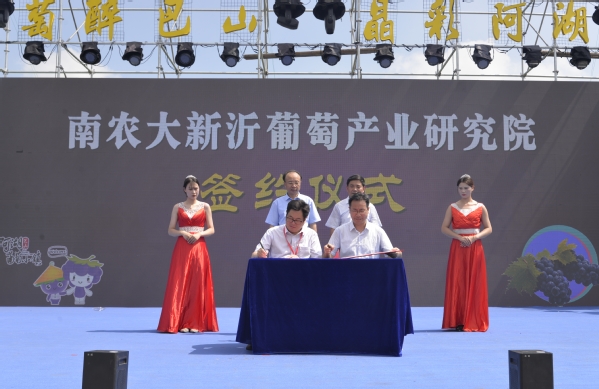 近年来,我校依托省挂县强农富民工程等项目为新沂葡萄产业发展开展科技服务。为深化我校与新沂市之间的合作与交流,充分发挥我校科技、人才、成果优势和新沂葡萄产业优势,双方共建了新沂葡萄产业研究院。研究院主要围绕产业技术研发、公共技术服务、人才队伍建设和科技成果转化四大功能定位,将成为集研发、培训与技术服务为一体的现代农业技术创新试验基地,高层次人才的培养与创新基地,产业发展与技术推广的培训基地及新成果推广与应用的转化基地,为推进新沂优势特色产业发展,打造有品质、有影响的农产品品牌提供重要的技术、人才支持。