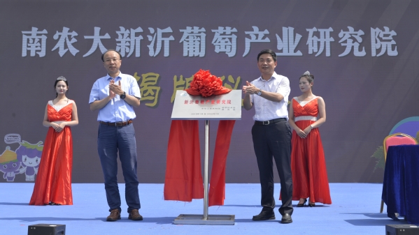会上,陈巍、高跃分别代表校地双方签署协议。丁艳锋与陈堂清为南农大—新沂葡萄产业研究院揭牌。