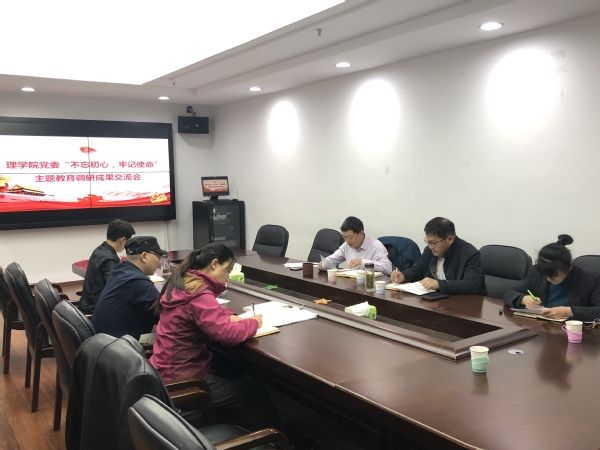 11月4日,理学院党委书记程正芳主持召开“不忘初心、牢记使命”主题教育调研成果交流会,学院6位领导班子成员针对自己的主题调研展开交流。