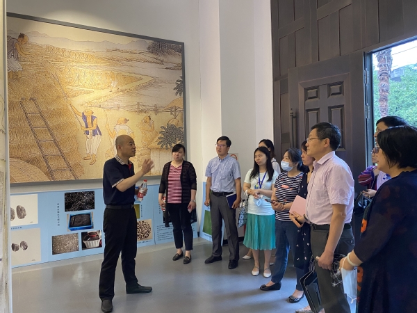分享会分为座谈和参观两个环节。沈志忠给大家介绍了南京涉农高校的历史沿革和发展脉络,回顾了我校办学的峥嵘岁月,大家饶有兴趣地听取了沈志忠的精彩演讲。座谈后,沈志忠带领与会的老师们深入参观了中华农业文明博物馆,结合博物馆内的古农具等展品,声情并茂地介绍了中华农业文明发展历史,将一幅幅鲜活的农业文明历史画卷呈现在大家的眼前。