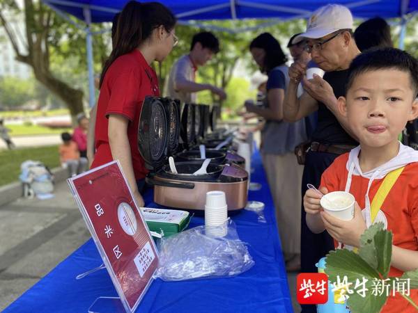 现场人气最旺的地方,就是品米区了,现场弥漫着浓浓的米饭香,实验室煮了不同品种的米饭,市民可以现场“干饭”,评选最好吃的大米。由南京农业大学万建民院士团队选育的“宁香粳9号”曾夺得金奖,研发团队成员、南京农业大学农学院江玲教授告诉记者,这款大米香味浓郁,闻着就想吃,而且吃起来既柔软、适口性好,又有韧性,口感很好,煮饭米水比可以达到1:1.2。