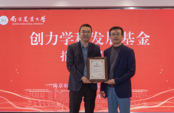 10月21日,“江苏南京农大动物药业发展基金”和“创力学科发展基金”捐赠签约仪式在南京农业大学举行。南京农业大学副校长、教育发展基金会理事长胡锋,江苏南京农大动物药业有限公司董事长王梁斌,2002届动医专业校友、江苏南京农大动物药业有限公司总经理翟中树,96级机械制造专业校友、南京创力传动机械有限公司董事长费秀国,校长办公室、校友总会办公室、工学院主要负责同志以及两家公司主要负责人出席仪式。