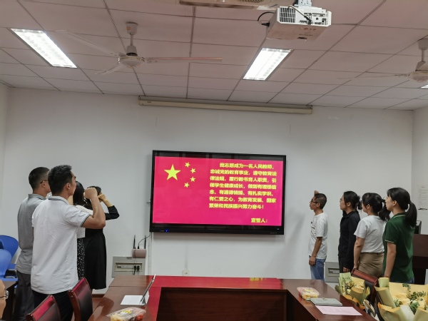 座谈会上,院领导为新进青年教师和荣休教师送上鲜花祝福,荣休教师沈益新教授为新入职教师佩戴校徽,并举行了新教师入职宣誓仪式和退休教师荣休仪式。