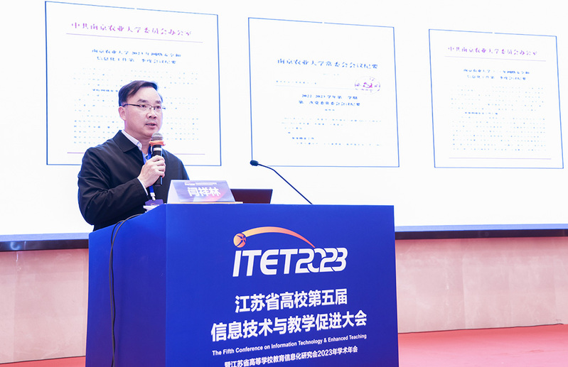 11月13日-15日,江苏省高校第五届信息技术与教学促进大会(ITET2023)暨江苏省高等学校教育信息化研究会2023年学术年会在常州召开。全省120所高校400余人参加,副校长闫祥林出席会议并作题为《推进特色智慧校园建设 赋能学校治理体系现代化》的报告。