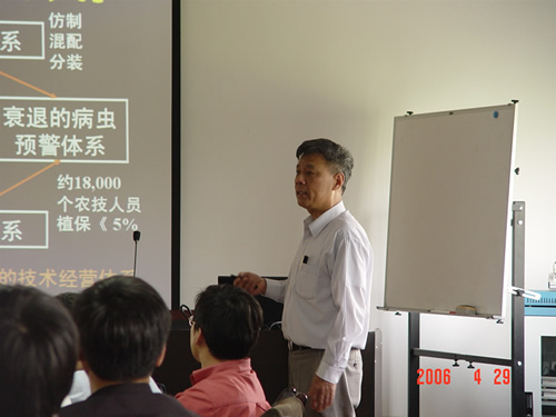 2006年4月29日,浙江大学应用昆虫学研究所师生一行19人来我校昆虫学系进行学术交流与联谊。这次活动以“促进交流,加强了解,增进友谊,共同发展”为宗旨。双方对本次活动相当重视,表现出了很高的热情。浙江大学原副校长程家安教授亲自挂帅,携同应用昆虫所老师、博士生和博士后来我校参加活动。南京农业大学校领导、植保学院及昆虫学系全体师生也特别关心和重视此次活动,并对活动进行了精心策划和统一安排。活动按原计划完成了各项议程,共同探讨了植保,特别是昆虫学领域内的热点与敏感话题,程家安教授及韩召军教授分别代表活动双方做了主题学术报告,与会师生介绍了各自的研究情况和今后研究的方向,并表达了两单位的兄弟深情。交流结束后,应用昆虫所全体师生参观了昆虫学系各实验室,交流了实验平台建设的经验。晚上,曲福田副校长在招待晚宴上致辞,活动气氛活跃而热烈,达到了交流与增进友谊的效果。