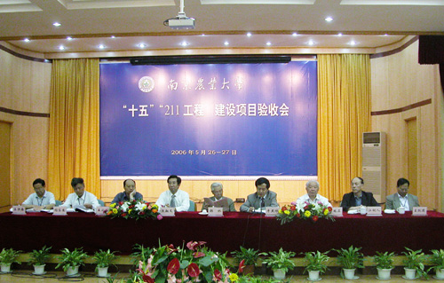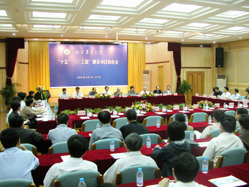 南京农业大学业党委书记管恒禄同志在开幕式上致词。他表示,“十五”期间,南京农业大学全校师生员工以邓小平理论和“三个代表”重要思想为指导,全面树立和落实科学发展观,认真贯彻教育部提出的“巩固、深化、提高、发展”的方针,坚持以重点学科建设为核心,大力加强公共服务体系建设和师资队伍建设,不断提高人才培养质量和科技创新能力,求真务实,艰苦奋斗,开拓创新,全面完成了“十五”“211工程”建设的各项任务,为学校建设高水平研究型大学奠定了坚实基础。实践证明,“十五”“211工程”建设项目的实施,引领并有力地推动了学校各项事业的快速发展,也必将对学校今后长远的建设与发展产生积极深远的影响。这次验收,是国家对我校“十五”“211工程”建设工作的全面检查,南京农业大学全校上下都十分珍惜这次机会。通过验收,将有助于我校认真总结办学经验、寻找不足与差距;各位专家、领导的建议与意见,将成为学校今后的工作动力和工作目标,将有助于加快推进我校的建设与发展。因此,他恳请各位专家和领导在项目验收和今后工作中,多提宝贵意见。学校将根据专家组验收意见,积极借鉴兄弟院校成功的办学经验,不断创新办学理念,进一步加强和改进各项工作,加快推进学校各项事业的全面、协调、可持续发展,为全面建设小康社会和创新型国家做出新的更大贡献。