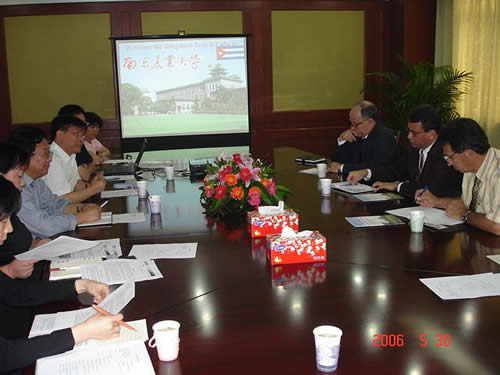 会见中,管书记首先对去年11月中旬随江苏省代表团访问古巴时受到的热情接待表示感谢。他说:古巴是拉美和加勒比地区的重要国家,半个世纪以来,古巴党、政府和人民在维护国家主权、发展民族经济、提高人民生活水平等方面取得了伟大成就,赢得了全世界爱好和平人士的尊敬;并表示学校愿意在农业科学的各个领域与古巴政府的相关部门和机构进行真挚的、实质性的合作。张红生教授向来访客人简要介绍了我校的基本情况,特别是国际交流与合作方面的成就。罗卫红、朱晶和常向阳等教授向客人介绍了各自研究领域取得的成果,表达了在两国政府或机构间的合作框架下与古巴同行开展广泛合作的意愿。