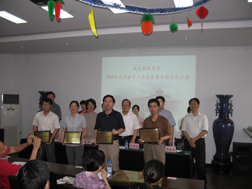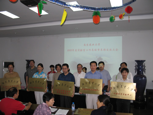 张晓东副处长首先对我校2005年实验室工作进行了回顾,他总结了2005年我校在实验教学中心建设与规范化运行、共用实验平台建设与资源共享、实验技术队伍建设等方面取得的成绩和在实验室工作涌现出来的先进集体、先进个人。徐翔副校长在会上宣读了学校实验教学中心主任聘任通知和2005年度实验室工作先进集体、先进个人奖励名单。举行了隆重的实验教学中心授牌仪式和实验室工作先进集体、先进个人表彰颁奖仪式。