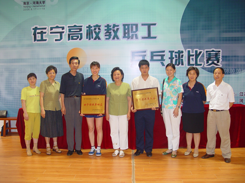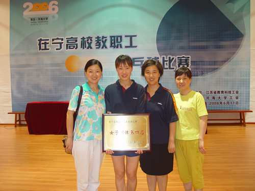 6月19日下午由江苏省教育科技工会主办、河海大学承办的2006年在宁高校教职工乒乓球比赛在河海大学体育馆落下帷幕。