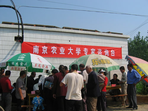 捐赠仪式结束后,我校领导和蔬菜专家郭世荣教授、科教兴农办主任汤国辉副教授、养殖专家王锋教授和陆应林副教授深入蔬菜种植和养殖大户进行技术指导,接受农民科技咨询,散发科技资料,帮助葛庄村进行农业产业结构调整规划,特别是帮助葛庄村实施省“整村推进”项目做好前期调研工作。农民对科技知识的渴求和孩子们对电脑和课外读本的喜爱令我校领导和专家们深受感动,并表示今后还会来到灌云的土地上。