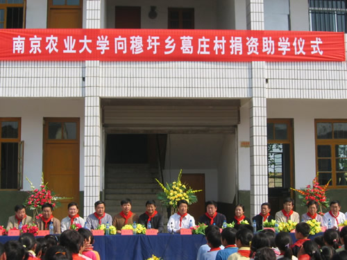 捐赠仪式上,花亚纯副书记表示,南京农业大学与灌云县有着长期和良好的合作关系,今后将继续加强合作,进一步帮助灌云县特别是葛庄村加快农村经济的发展,促进新农村建设和农民脱贫致富。