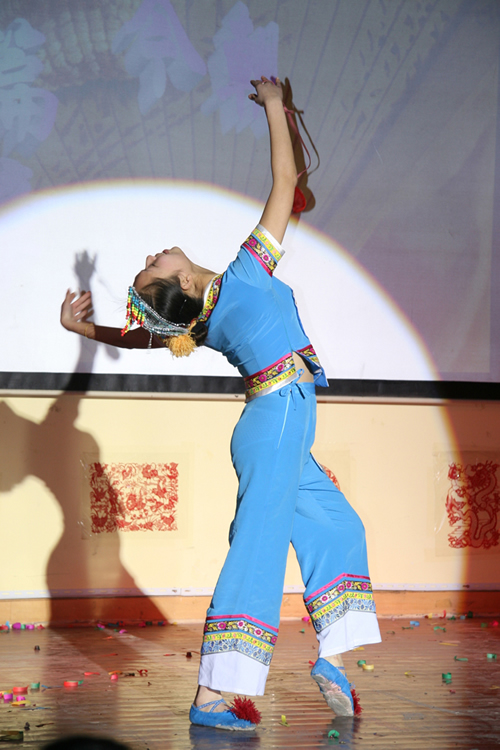 我们在今朝憧憬未来,下面的节目愈加精彩。我校的民歌皇后齐佳选唱了歌曲〈〈越走路越宽〉〉。而后还有我院的健美操表演〈〈花火〉〉,她们代表新一代的资环人为资环院的十年庆典献上了自己的一份礼物。