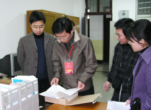 汇报、座谈会之后,方炎明教授在院领导的陪同下参观了学院的实验室和教学实验中心,并仔细查阅了近年来学院毕业生的论文和社会实践报告等。