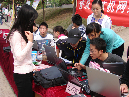 4月14日,由校团委主办,校大学生科协、绿岛网络、各院大学生科协承办的大型计算机网络知识普及活动在大学生活动中心门口顺利进行。