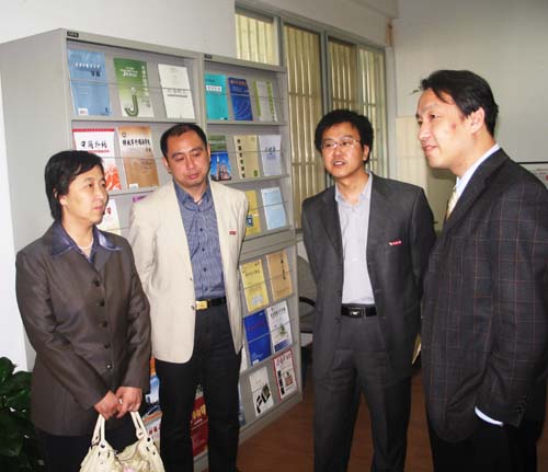 包军教授还参观了外国语学院教学成果展和图书资料室,详细了解了资料的使用情况及本科生、研究生毕业论文的选题情况。