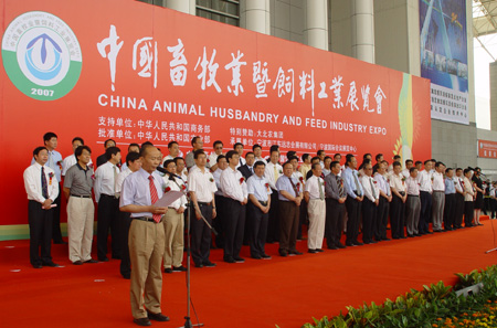 2007中国畜牧业暨饲料工业展览会于2007年5月19日-20日在宁波国际会展中心举行。开幕式由中国畜牧总站站长、中国饲料工业协会秘书长谷继承主持,农业部副部长、中国畜牧业协会会长张宝文致开幕词、中国饲料工业协会会长白美清宣布2007中国畜牧业暨饲料工业展览会开幕。该展览会由中国畜牧业交易会和中国饲料工业展览展示会“强强联合”举办,目的是全面落实科学发展观,增加畜牧业和饲料工业对我国新农村建设的贡献率,充分彰显我国畜牧业与饲料工业的整体实力,加大畜牧业与饲料工业的新品种、新技术、新产品、新成果的推广力度,沟通国内外市场信息,增进国际间的交流与合作,增强我国畜牧业与饲料工业的国际竞争力,提高我国畜牧业与饲料工业的经济效益与社会效益,构筑畜牧业与饲料工业生产、加工、贸易及经营、销售与消费者互动的桥梁,提供团结协作、公平竞争、互利互惠、共同发展的平台,展示企业形象及产品品牌。参加展览会的企业有1000余家,展位数量达到2200余个,展览面积超过4万平方米,包括了畜牧行业的种畜禽、动物保健品、饲料、畜牧机械、畜产品加工、优质畜禽产品等各方面龙头企业。