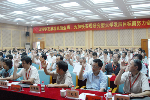 管恒禄同志针对我校加快建设研究型大学的奋斗目标提出了希望与要求。他说,实现研究型大学的宏伟目标核心在加快发展,目前我校在学科建设、人才培养、科学研究、办学条件方面虽然有较好的基础,但与研究型大学的目标要求相比,与国内其他高水平大学相比,我们还有很长的路要走,我们必须进一步增强忧患意识,牢牢把握发展这一要务,以更加宽阔的思路、更加积极的改革、更加努力的工作,始终坚持内涵发展、特色发展、科学发展、和谐发展,全力推进学校办学水平、工作实绩再上新台阶。他要求,新一届党委和党政领导集体要带领各级党组织、党员干部、师生员工发扬求真务实精神,真抓实干,落实好党代会精神;各部门、各学院、各单位要在大会目标的指引下,从实际出发,凝心聚力,把精力集中到学校各项工作中来。他表示,相信在全校党员干部、师生员工的共同努力下,学校的未来会更加美好!