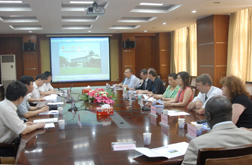 国际教育学院张红生院长、园艺学院陈劲枫副院长和生命科学学院张炜副院长接待了代表团,向代表团介绍了我校及园艺学院、生命科学学院的教学、科研、学科建设和国际合作等方面的情况。张红生院长说,来访的美国高校,在生命科学、园艺学、农学、植物保护和农业经济等学科方面,与我校有着相似的学科专业设置和雄厚的实力,双方在教学、科研和学生联合培养等方面有着良好的合作前景。
