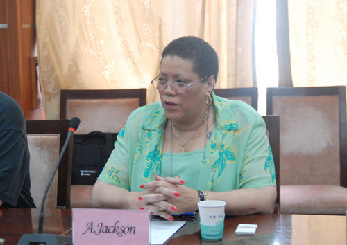 代表团团长美国州立大学与学院协会国际部主任艾琳·杰克森女士高度赞赏我校的国际化办学水平