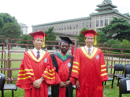 7月1日上午,在学校大学生活动中心举行了2007届硕士、博士学位授予仪式,校学位评定委员会主席、校长郑小波教授向Joseph Ngwela Wolukau颁发了博士学位证书。