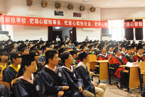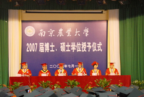 7月1日上午,我校在大学生活动中心隆重举行2007届博士、硕士学位授予仪式。校学位评定委员会委员、学院院长及党委副书记、研究生导师代表、研究生管理系统工作人员、毕业研究生及家属近千人参加了学位授予仪式。今年,我校首次在现有10个学科门类同时授予学位,共授予192人博士学位、授予797人硕士学位。