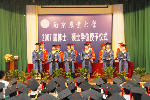 学位授予仪式上,校党委书记管恒禄教授宣读了授予博士、硕士学位人员名单。随后校党委书记管恒禄教授、校长郑小波教授、工程院院士盖钧镒教授、副校长徐翔教授、曲福田教授、沈其荣教授等为博士、硕士学位获得者颁发了学位证书。副校长曲福田教授主持了学位授予仪式。