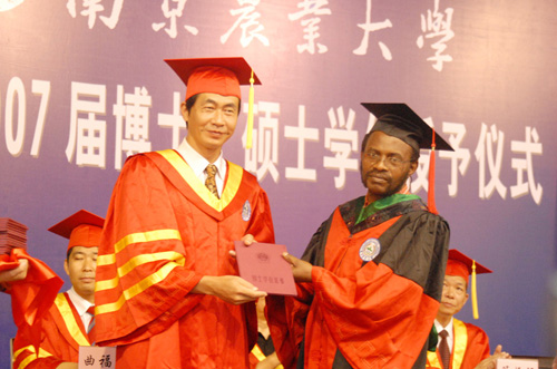 郑小波校长为来自肯尼亚埃格顿大学Joseph Ngwela Wolukau留学生颁发学位证书