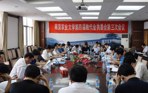 7月3日下午,校第四届教代会执行委员会在行政楼A613会议室召开第三次会议,审议《南京农业大学教职工住房分配货币化暂行办法(草案)》。教代会执委会副主任孙健、徐翔、沈其荣和在校的教代会执委会委员共30人参加了会议。会议由执委会主任花亚纯主持。会上,委员们首先听取了资产管理与后勤保障处处长钱贻隽关于起草《南京农业大学教职工住房分配货币化暂行办法(草案)》的背景、经过,以及制订该办法的有关法律、政策依据和个别条款的说明。委员们对暂行办法的六章二十条内容,逐条逐款作了认真、仔细的讨论,相关职能部门的负责人现场作了解答。委员们提出了部分修改意见后,表决通过了《南京农业大学教职工住房分配货币化暂行办法》。此暂行办法待报南京市房改办备案后,即在校内实行。人事处处长王春春代表学校附校改革工作小组向委员们作了关于附校改制调研情况的通报。财务处处长张兵作了有关税收情况的通报。