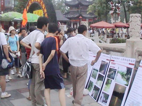 2007年“秦淮环保行”的调查分析水样和沿秦淮河污染源调查是“重头戏”。30名学子对内外线秦淮河进行了徒步考察,就秦淮河污染的主要原因、秦淮河治理成效、对秦淮河治理的建议等方面走访了近200名沿岸居民,同时采集了秦淮流域中18个不同地点的水样进行分析,并在徒步考察过程中对沿岸工厂、居民点、船舶、农田等可能污染源进行了调研。