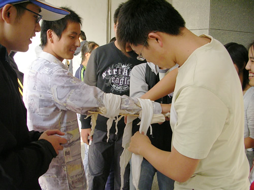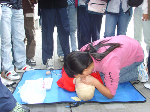 上午有资环,植保,农学院红十字分会,下午有食品,外语,信息院红十字分会参加了此次活动。活动主要有三方面的培训:人工呼吸,止血法,包扎法;并做了急救知识宣传画廊,让学员更直观地学习,有急救证的同学现场为同学们做了演示和指导。在活动即将结束时,还举行了急救比赛,帮助同学们巩固刚学到的要点和技能。