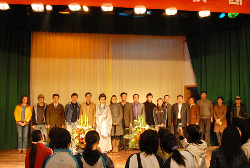 本次活动由省委宣传部和省教育厅共同举办,校党委宣传部、教务处、校团委共同承办,校党委宣传部部长倪峰、教务处处长胡锋、校工会主席李建兰、研究生工作部部长董维春等领导与师生们一起观看了演出,并与演员们合影留念。