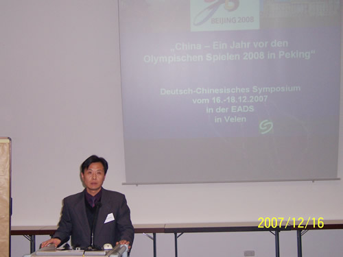 首届中德体育学术论坛于2007年12月13-18日在德国欧洲体育学术中心举行。