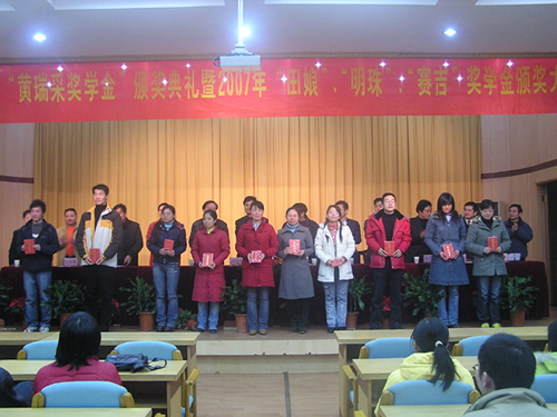 颁奖大会上,江苏省农科院院长、黄瑞采基金会理事长严少华研究员首先致词,详细介绍了黄瑞采教授的生平事迹及“黄瑞采基金”的基本情况。中科院南京市土壤研究所所长、中国土壤学会理事长周健民研究员宣读了2007年“黄瑞才奖学金”的获奖名单,并举行了隆重的颁奖仪式。随后,资环学院徐国华院长作了发言,他代表资环学院全体师生向黄瑞采基金会表示感谢,向所有黄瑞采奖学金获奖师生表示祝贺。他说,近年来资环学院在学科建设、科学研究和人才培养等方面均取得了显著成绩,这些成绩的取得离不开黄瑞采教授等老一辈科学家所打下的良好基础,离不开资环学院各位校友一如既往的关心和帮助,同时也离不开“田娘”、“明珠”、“赛吉”等友好合作企业的支持。他表示,在资环学院全体师生员工的共同努力下,在社会各界的关心、支持下,资环学院有信心早日把自己建设成为国内一流、在国际上具有一定影响力的研究型学院。