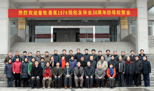2008年1月12日上午九点,我校畜牧兽医74级校友在逸夫楼2064正昌报告厅召开毕业三十周年同学会。会议由74级畜牧兽医班班长张白银老师主持,到会的领导有副校长曲福田、动医院党委书记戴建君、动科院院长王恬及班主任周荷英老师。校党委书记管恒禄及动科院党委书记张剑仲以校友的身份参加会议。