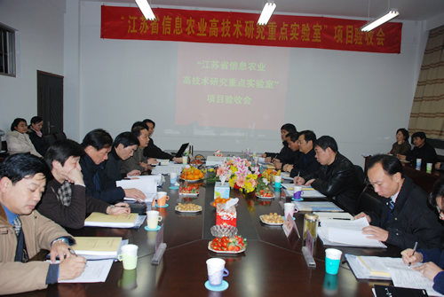 2008年1月11日上午,江苏省科技厅组织专家组对南京农业大学承担的“江苏省信息农业高技术研究重点实验室”建设项目进行了验收。专家组听取了实验室主任曹卫星教授所作的实验室建设工作汇报,审阅了相关技术资料,现场考察了实验室建设状况,并进行了认真的讨论和评议。专家组充分肯定了实验室建设期所取得的显著成绩,认为该实验室在研究方向凝炼、人才队伍建设、研究水平提升、科研成果产出、基础条件建设与实验室管理等方面达到并超过了预期的建设目标,一致同意通过项目验收。并建议进一步推进信息农业技术体系的研究探索,加快研究成果的转化和申报国家级重点实验室。