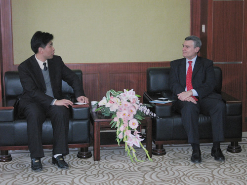 2008年2月27日下午,瑞士驻上海总领事馆总领事范维廉先生和经济处聂利群主任在南京市外事办公室欧非处殷好主任的陪同下访问我校。副校长曲福田会见了总领事一行。