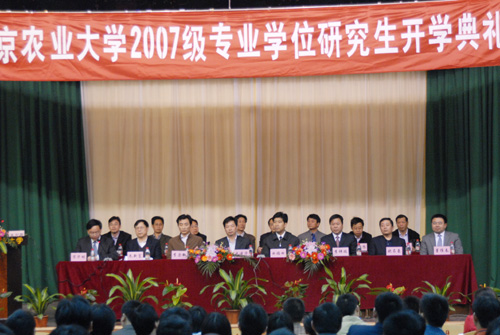 4月19日上午10:00时,我校2007级专业学位研究生开学典礼在大学生活动中心隆重举行。江苏省农林厅、办学合作单位及相关学院有关领导以及2007级专业研究生新生等400多人参加了典礼。开学典礼由研究生院培养处宋华明处长主持,副校长、研究生院常务副院长曲福田教授参加典礼并致辞。