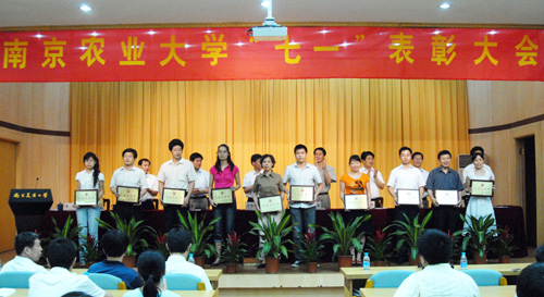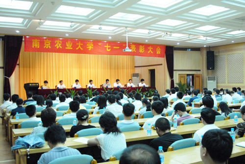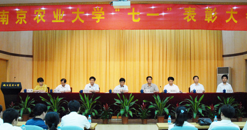 6月30日下午,我校在金陵研究院报告厅召开“七一”表彰暨“五个一工程”颁奖大会,对在学校党建、思想政治工作和教学、科研、管理、服务社会等各项工作中做出显著成绩的先进基层党组织、先进党支部、先进分党校、优秀共产党员和优秀党务工作者予以表彰,并为学校精神文明建设“五个一工程”获奖单位和个人颁奖。校中层以上干部及受表彰单位与个人代表参加了会议,校党委书记管恒禄,校长郑小波,校党委副书记庄娱乐、花亚纯,副校长孙健、曹卫星、曲福田在主席台就坐。
