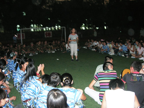 “桂子月中落,校园分外明”。9月14日晚7:00,学校南门广场和足球场歌声沸腾,热闹非凡。我校参加军训的2675名新生与64名教官在这里度过了一个特别而又难忘的中秋之夜。