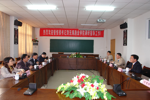 11月15日,校党委书记管恒禄到中国水产科学研究院淡水渔业研究中心进行工作访问,中心领导热情接待管书记一行并进行了工作交流。淡水渔业研究中心戈贤平副主任向管恒禄书记介绍了中心的基本情况以及中心在科技创新体系建设、科研成果、渔业学院人才培养等方面取得的进展和成绩。管书记回顾了南京农业大学和淡水渔业研究中心十五年的合作与交流历史,对淡水渔业中心近年来取得的成绩及对我国渔业科技进步所做出的突出贡献表示祝贺,同时对渔业学院在本科生和研究生的教育培养中取得的成绩表示充分肯定。随后,管恒禄一行在戈贤平副主任、袁新华副院长等的陪同下,考察了教室、报告厅、计算机房和学生活动中心等教学、生活设施。之后,管恒禄与渔业学院的近200名师生进行了交流,他希望同学们珍惜在渔业学院学习的机会,勤奋学习,为我国水产养殖事业做贡献。
