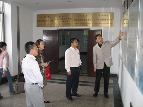 4月22日上午,廖明副校长一行在实验室与基地管理处张晓东副处长的陪同下参观了我校作物遗传与种质创新国家重点实验室、国家肉品质量安全控制工程技术研究中心、生命科学科研平台。