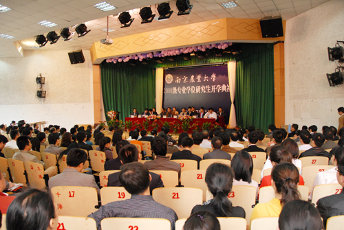 4月22日上午10:30时,我校2008级专业学位研究生开学典礼在大学生活动中心隆重举行。江苏省农林厅、办学合作单位及相关学院有关领导以及2008级专业研究生新生等400多人参加了典礼。开学典礼由研究生院培养处宋华明处长主持,副校长沈其荣教授参加典礼并致辞。