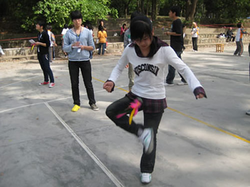 4月26日下午2:00,南京农业大学2009年校园吉尼斯的娱乐体育类大赛在操场东面的篮球场拉开帷幕。此次校园吉尼斯以“和谐、团结、奋进”为主题,由学生工作处、学生社区自我管理委员会、资环院学生会体育部共同承办,得到了同学们的广泛响应和支持,活动吸引了近500名学生的参与,现场报名十分火爆,有的甚至以宿舍为单位参加了几个项目的活动,全体学生经过积极准备,层层选拔,决出了各个项目的校园吉尼斯。