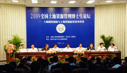 5月9日,由全国土地资源管理院长(系主任)联谊会主办,南京农业大学公共管理学院(土地管理学院)承办的2009全国首届土地资源管理博士生论坛开幕式在南京农业大学举行。来自中国人民大学、浙江大学、武汉大学、华中农业大学、西南大学等全国20多所有关高校的70余名博士研究生参加了此次论坛。论坛紧紧围绕“土地制度创新与土地配置效率改善”的主题,对全国土地资源管理领域的最新研究成果进行广泛交流。